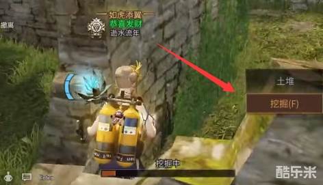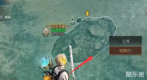 3、然后爬山前往废墟,这个地方有两个箱子,拿完外边的箱子之后跳进墙角即可有挖掘的按钮出现,即可挖出第二个宝箱。