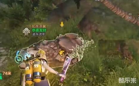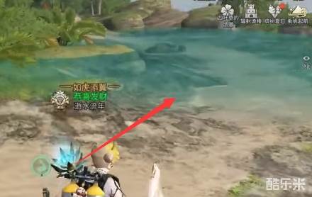 4、然后我们前往瀑布,在地图上即可看到瀑布的位置,然后向水中走可以看见石堆,挖掘可以得到箱子。