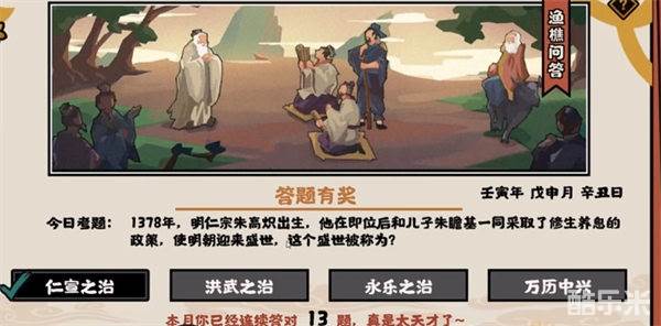 1、今日考题:1378年,明仁宗朱高炽出生,他在即位后和儿子朱瞻基一同采取了修生养息的政策,使明朝迎来盛世,这个盛世被称为?