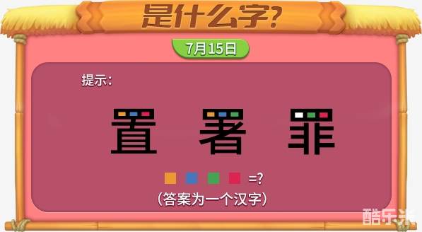 关键信息便在于4个颜色的方块代表了什么——由于题干的三个汉字都是四字头,所以很容易让人想到要猜的那个字也是个四字头,但是!如果你这样想,那就会陷入到误区当中,置和署的共同点还有一个:都是zh音,所以黄代表z,蓝代表h,红代表i,绿代表e,连起来就是zhei,在汉语中,只有“这”字,是发zhei音的,所以答案是:这。