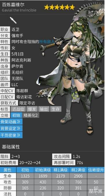 百嘉的面板是群卫里最高的,拥有最高的基础防御力、生命、攻击力比煌只差了9点。