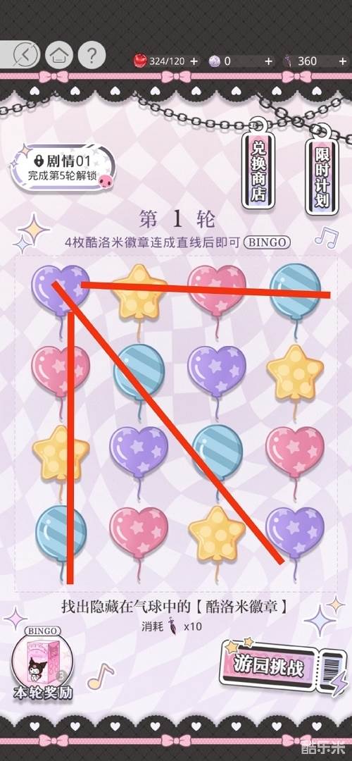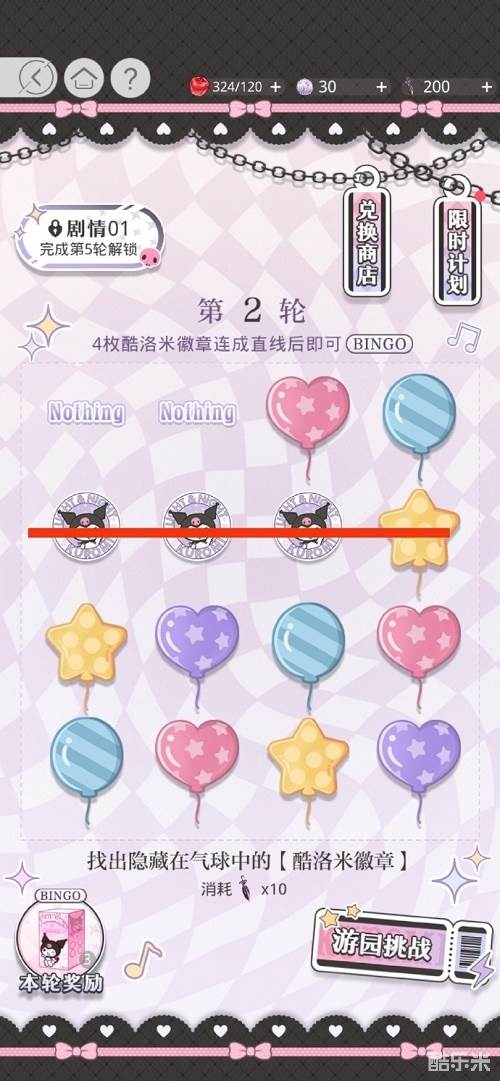 1、去一箭倾心里翻酷洛米徽章,四个酷洛米徽章连成一线就有bingo大奖。