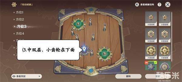 1.选择3号位,使用中型双层齿轮,翻转使小齿轮一层在下面。
