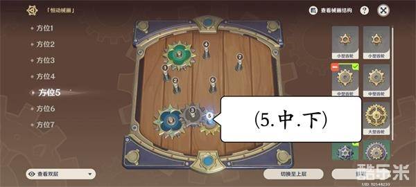 2.选择5号位,使用中型普通齿轮,放在下层位。