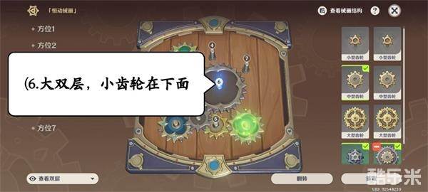 3.选择6号位,使用大型双层齿轮,翻转使小齿轮一层在下面。