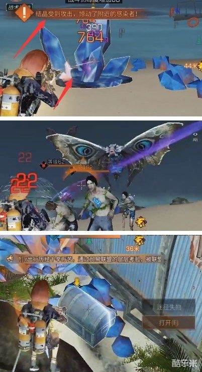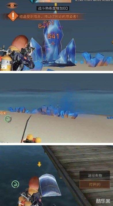 3、然后跟随地图的指引找到三处晶石,破坏晶石将会吸引到感染者来袭,我们需要全部清理掉。