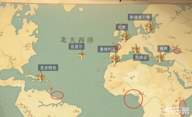 建议玩家将自建港改建在图中的3、4位置,方便来回拖航,节省航行时间。