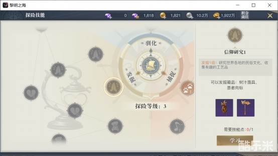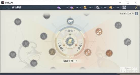 当玩家通过不同探险玩法收集的研究点数,从而提升探险等级后,就会获得技能点,学习探险技能。