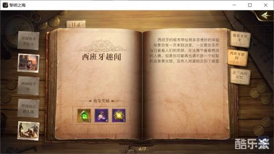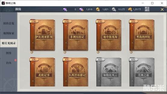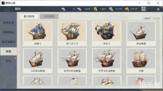 图鉴,分为船只图鉴和史实图鉴,每次解锁给一定绑钻。