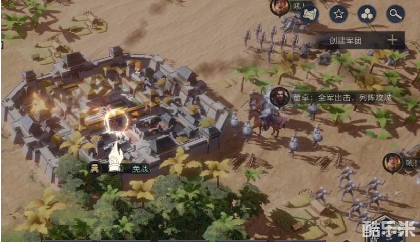 征战三国的军团是各位主公合作的联盟,由军团长、副军团长和普通成员组成。军团长总览军团大权,可以委任团员职务、发布公告、群发邮件、攻略名城。其中攻略名城是军团活动的重点,攻略成功军团不仅能获得各种增益,还能在城内招揽良才,接取皇榜任务,激活更多奖励。同时,军团成员可以选择资助军团,以下就是游戏玩法。