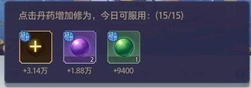 (1)服药:在修炼界面的右侧中间,点击可以看到目前有的灵药。每天服用灵药的次数有上限。