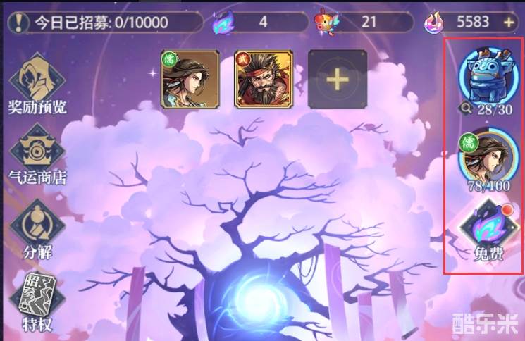 招募常规情况下共有三个模块:普通招募、阵营招募和灵树祈愿