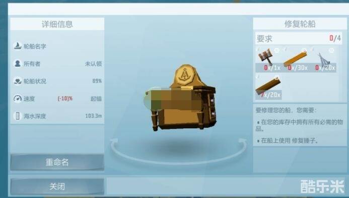 如果发现船体的完整性下降到了极低的位置,建议火速通过【轮船导航表】来收集材料准备工具,修复破损船体。