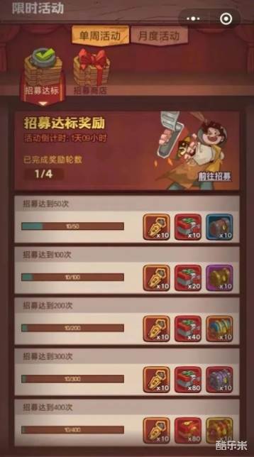 招募400次完成一轮,但是每完成一小轮会送10枚招募令,所以完成一轮只需要360枚招募令,四轮需要1440枚招募令,除非你是氪金大佬,一般人很难完成四轮,平民完成两轮顶天了。