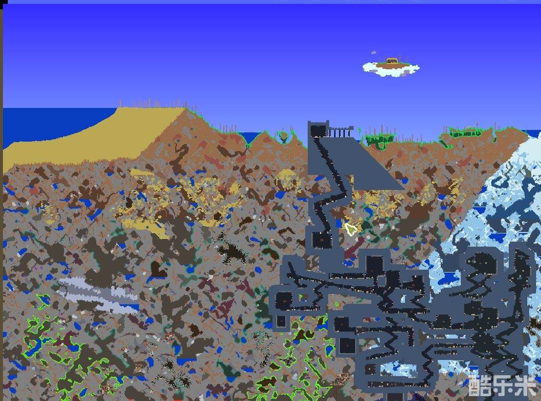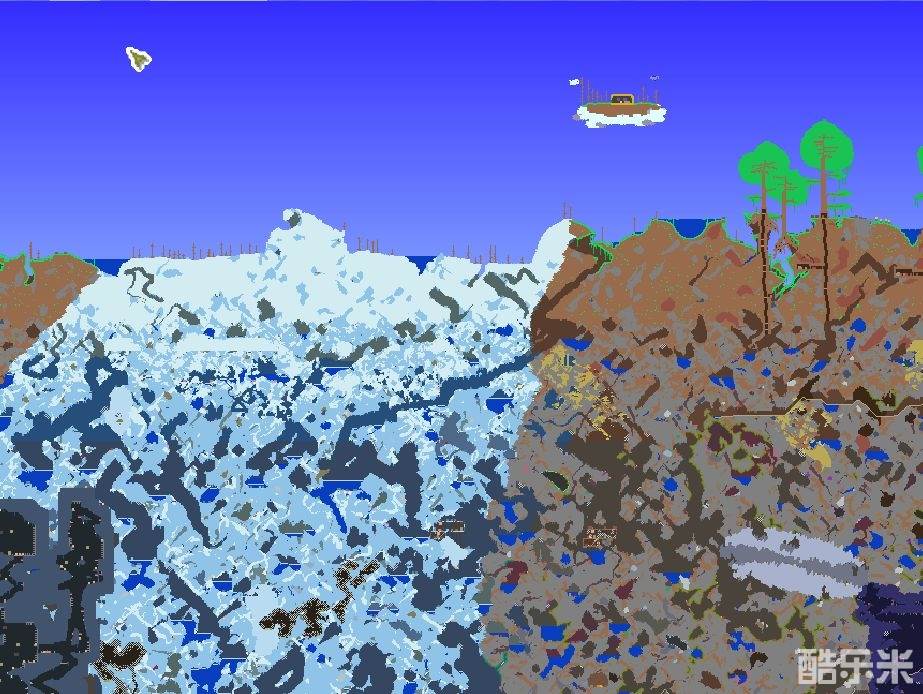 由于泰拉瑞亚地图生成机制有一定的「规律」,这些点位刷新空岛的可能性比较大,等拿到重力药水可以详细看看: