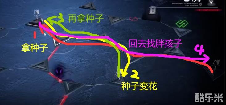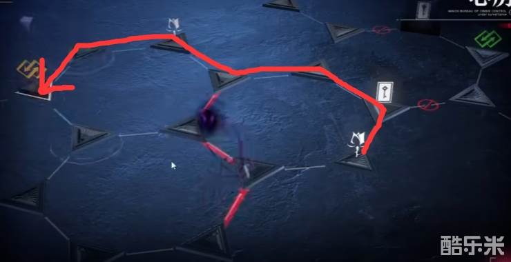 然后要去右边的问号,但是这里需要注意黑影的位置,如果黑影马上要走过来了就往回走一步刷一下黑影的位置。