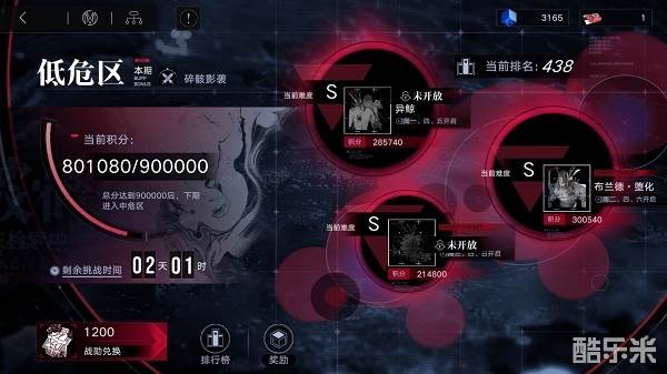 1、【破碎防线】分为[低危区]、[中危区]、[高危区]三种难度,每期玩家到达目标分数后,下期将进入更高难度的区域。