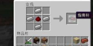 1、Minecraft中地图是通过指南针和纸合成,首先将红石和铁锭合成指南针。