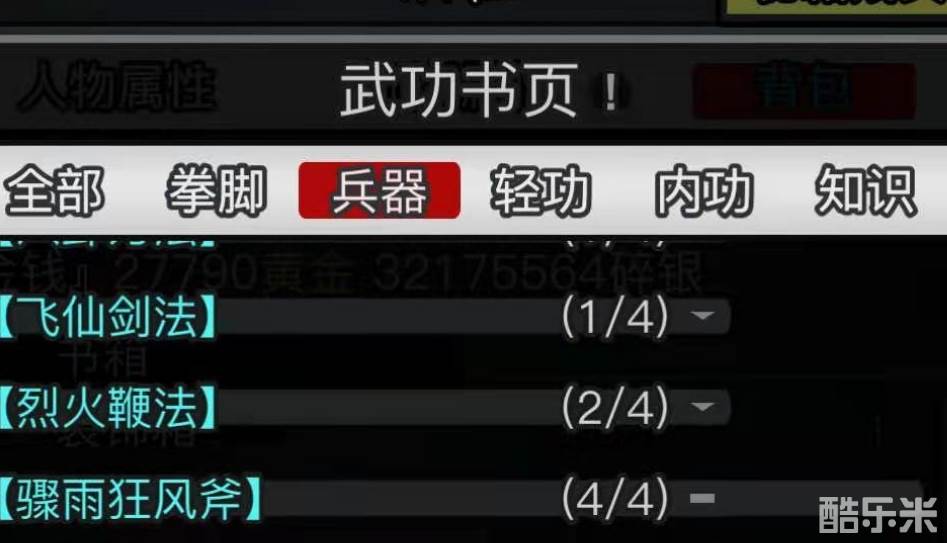 我们可以白嫖的第三个武功叫做骤雨狂风斧,是一种刀法,可以准备为刀法和招架,系数还是不错的,我们可以通过每天的武境三试任务中,每次击败第一个试炼者薛慕远时几率从四个书页随机掉落的一个书页中来获得,由于每天只有一次机会且每次掉落的书页不确定,所以不是很容易攒齐。