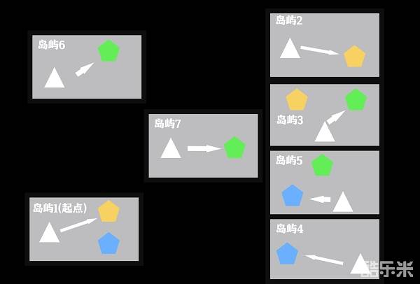 三、本图共包含九个传送点,七个孤岛,一个终点;