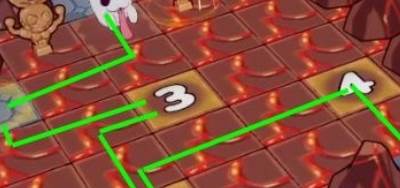 2、紧接着按照下图的顺序不断的移动到指定数字上恢复能量,然后踩到第二个石块上消灭幽灵。
