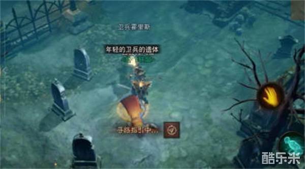 1:地图的位置如图所示,在埋骨堂中,我们首先来到埋骨堂的位置,找到npc卫兵霍里斯,对话之后完成奇遇任务;