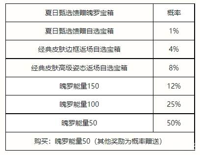 2、 夏日甄选馈赠魄罗宝箱,打开100次至少掉落1个夏日甄选馈赠自选宝箱。夏日甄选馈赠自选宝箱概率始终为1%。