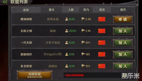 玩家可以在主界面上打开联盟,加入联盟没有任何的条件限制。