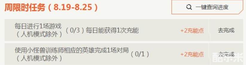 使用小怪兽训练师相应的英雄完成1场对局(人机模式除外):+2充能点(最高2点)