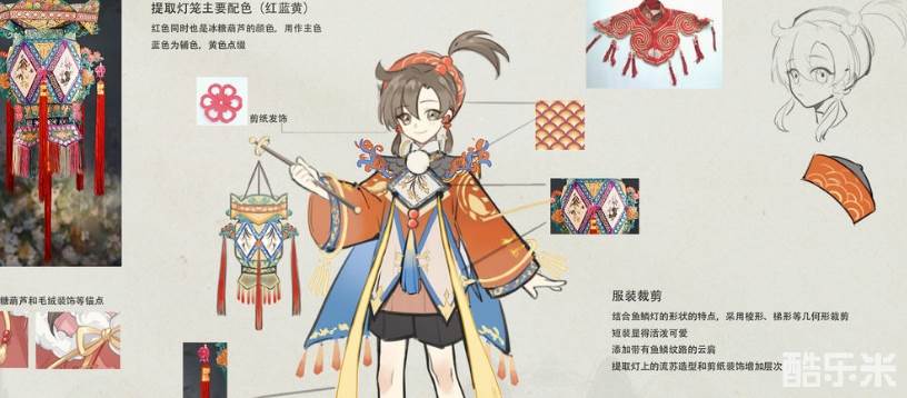 《食物语》×鱼鳞彩灯非遗文化联动中冰糖葫芦时装设计灵感来源与思路。