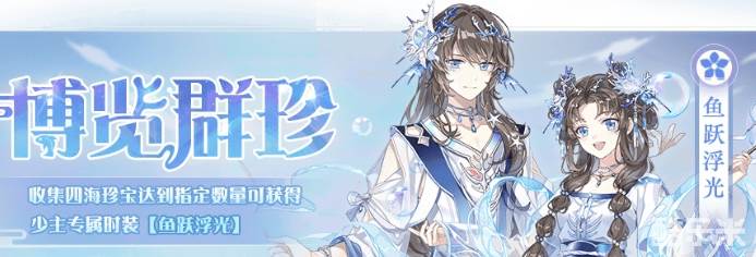 【博览群珍】参与活动领取少主专属时装「鱼跃浮光」每日首次消耗体力通关任意关卡后将会开启【博览群珍】活动,完成活动关卡可获得「四海珍宝」。收集足够数量的「四海珍宝」即可制作少主专属时装「鱼跃浮光」。