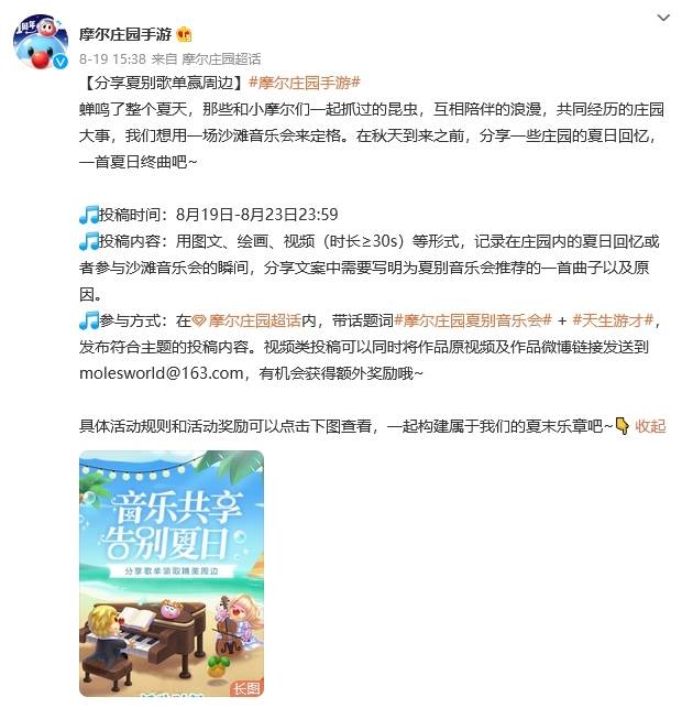 庄园最近有很多可以参与的活动哦,只需要分享夏别歌单就可以赢取精美周边。具体的内容已经为大家整理好了,家摩们快来官方微博和官方B站看看吧!
