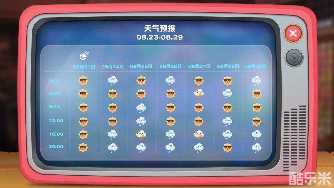 下面为大家放送未来一周的天气预报。夏天的蝉鸣声渐渐远去,飘落的枫叶作为信差带来了秋天的气息,25日庄园将正式迎来秋季啦!距庄园气象台观测,全新天气——枫叶雨将在25日下午16:00首次出现,届时小摩尔可以代替秋天的第一杯奶茶,跟友摩一起欣赏秋天的第一场枫叶雨哦!