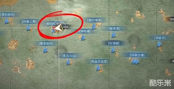 1、打开地图我们可以在风暴三角的东侧找到鲸跃实验室,驾驶探险船前往。(该区域的宝箱是随机刷新的)