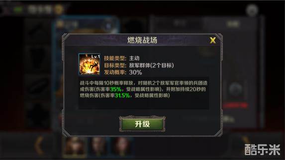 被动技能:学习之后,战斗中必然生效,仅作用于军官自身的技能。