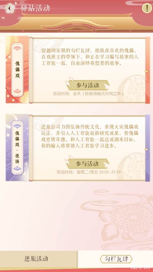 傀儡戏中,玩家将和人工智能AI小灵一起共同打造一场形式独特的江湖之旅!玩家选择角色进行组队扮演,AI小灵将根据玩家的发言,生成一段剧情。玩家最终要通过自己的发言引导剧情走向,让人工智能的生成内容,达成设定的目标,例如“出门”“接吻”等。