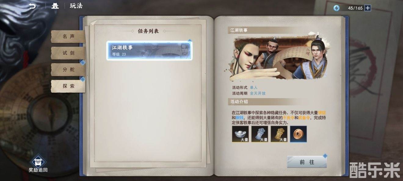 显然,轶事任务需要的道具,是由帮贡来兑换的,所以我们需要积攒大量的帮贡兑换道具来完成轶事任务。