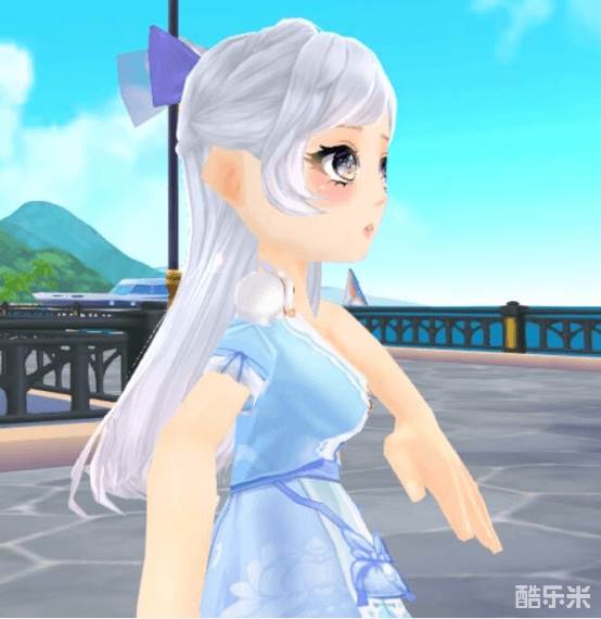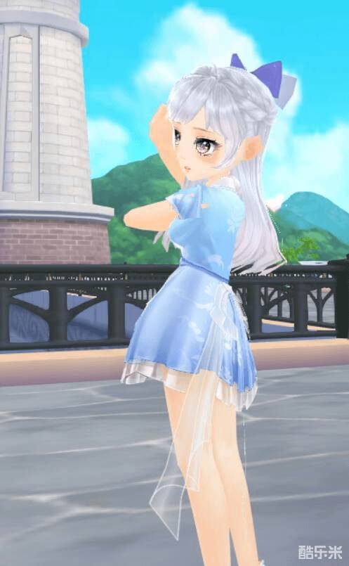 精心编织的发型搭配蓝色蝴蝶结,长发顺脸颊微微垂下,额前碎发恰好修饰脸型,精致可爱,增添灵动。
