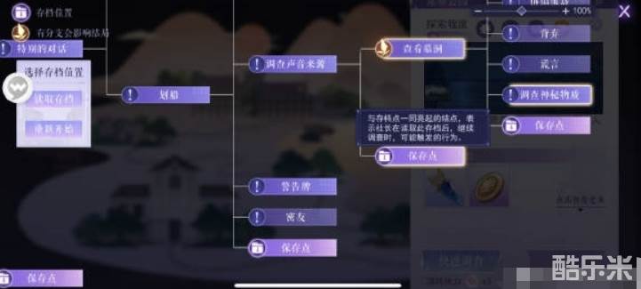 点击保存点的时候,拓扑图后续发光的位置代表从此保存点进入后可进行的探索行动。