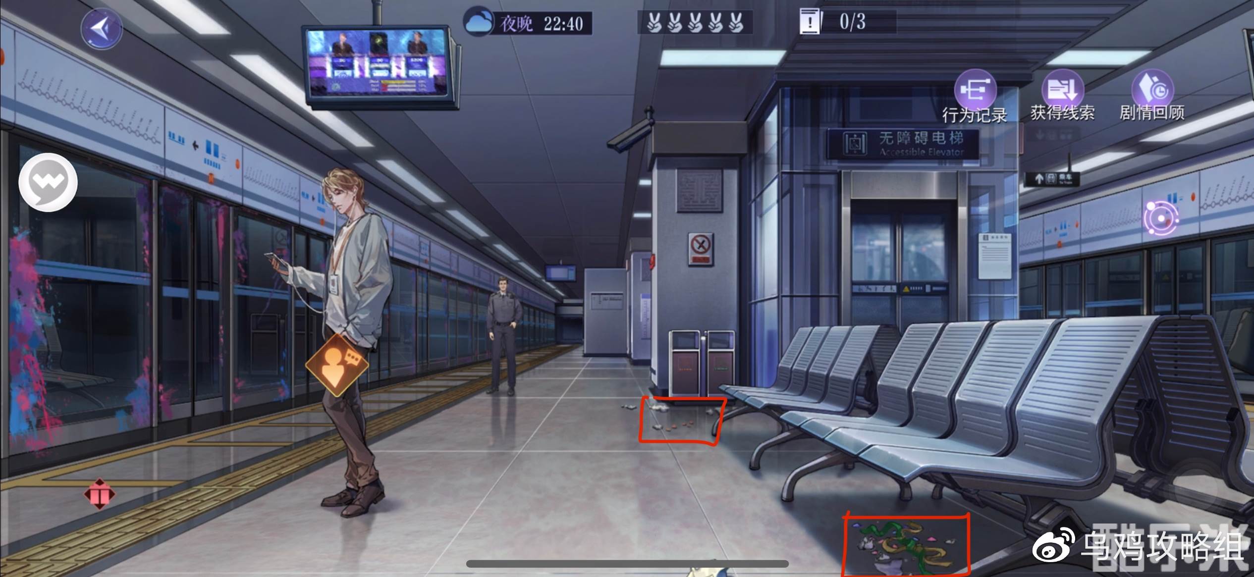 1、隐藏两处-节点:电梯附近+报纸碎片一+座椅附近+报纸碎片二