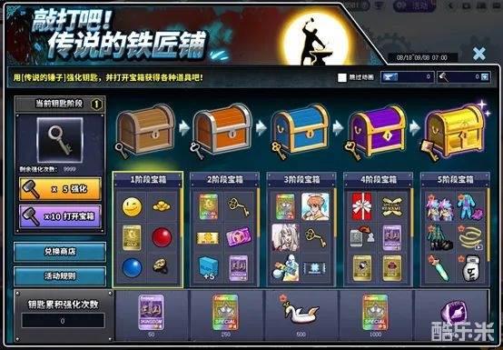 可以用传说的锤子[强化]钥匙并且可以打开对应阶段的宝箱。