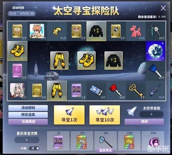 寻宝时有概率获得太空宝藏兑换券。