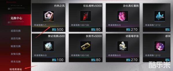 2、玩家需要先攻略活动剧情,积攒出足够的活动货币,之后进入“枯岛贸易站”进行兑换