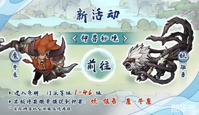 掌门前往该“秘境”内搜寻灵宠即有概率捕捉到神兽:陆吾、牛魔。