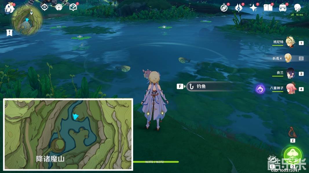 5,之后飞下去,在标记位置钓鱼(第四个×)