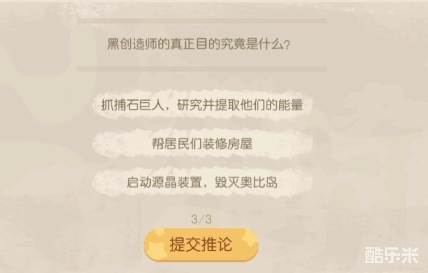3、问题三:答案是【抓捕石巨人,研究并提取他们的能量】