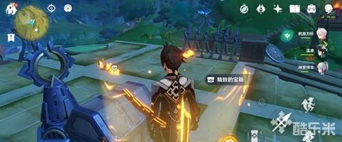 4、接近机械开启挑战,机关上有几处红色标记,这意味着我们需要找到几处标记,它被标记在建筑里,是金色的。