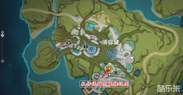 4、然后打开地图使用传送锚点,传送到须弥城。