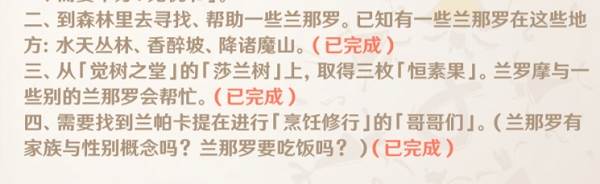 1、想要完成森林的孩子们世界任务,我们需要完成森林书道具中以下部分(图中每段话后面跟着已完成字样);