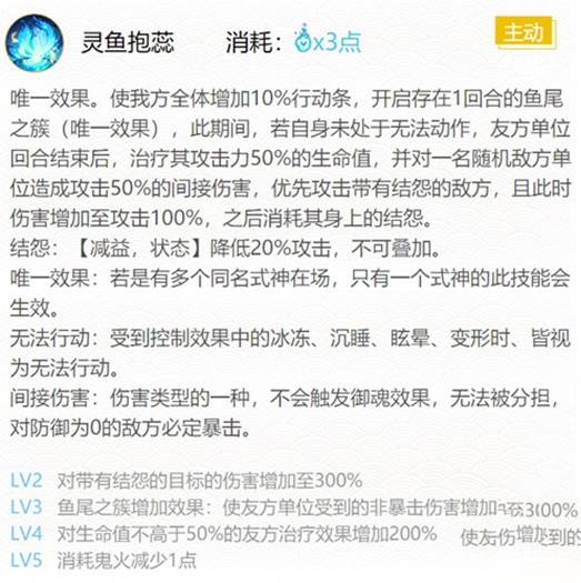 金鱼姬的核心是金鱼的存在,自己的生命越高,金鱼存活的越久,才能发挥这个式神的效果。